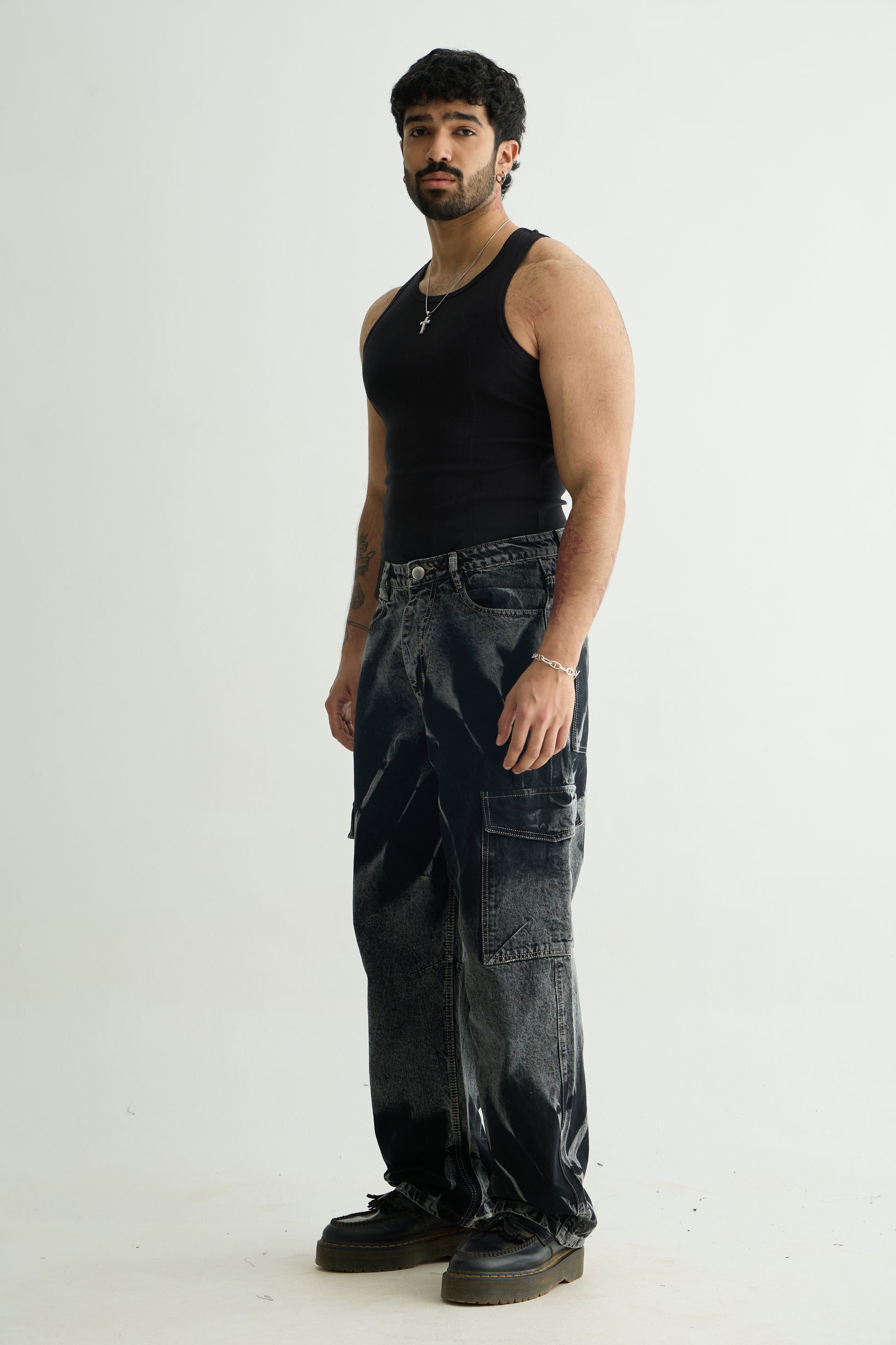 Utility-inspired cargo pants with a black fade finish and functional pockets. Built for comfort and style with a relaxed fit that works for any occasion. A versatile essential with rugged appeal.