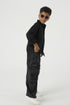 Clean black linen with fluid movement. Sharp without effort.