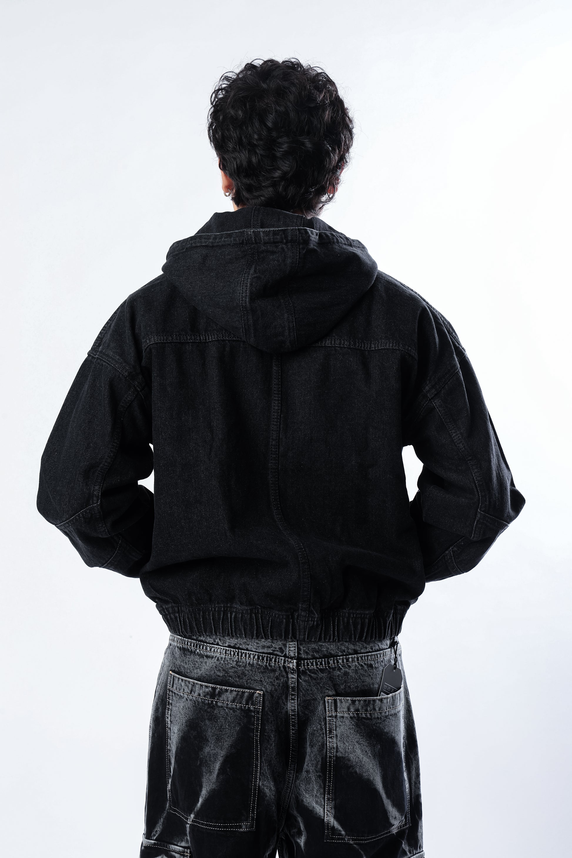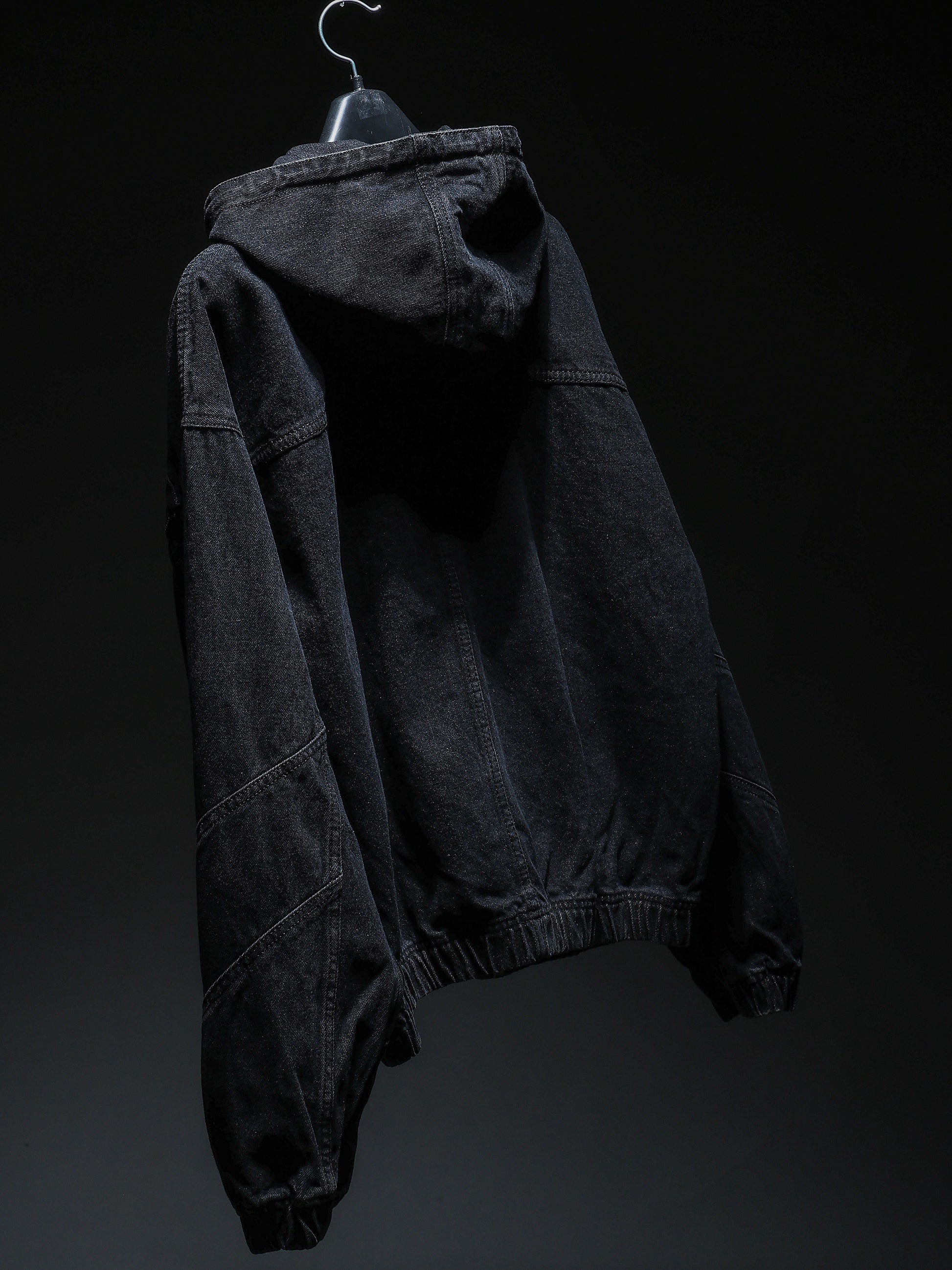 This black washed denim hoodie delivers a bold, modern look with its relaxed bomber-fit silhouette. Crafted from durable denim and finished with a subtle washed effect, it offers a lived-in feel while keeping a structured shape—ideal for layering and everyday wear.