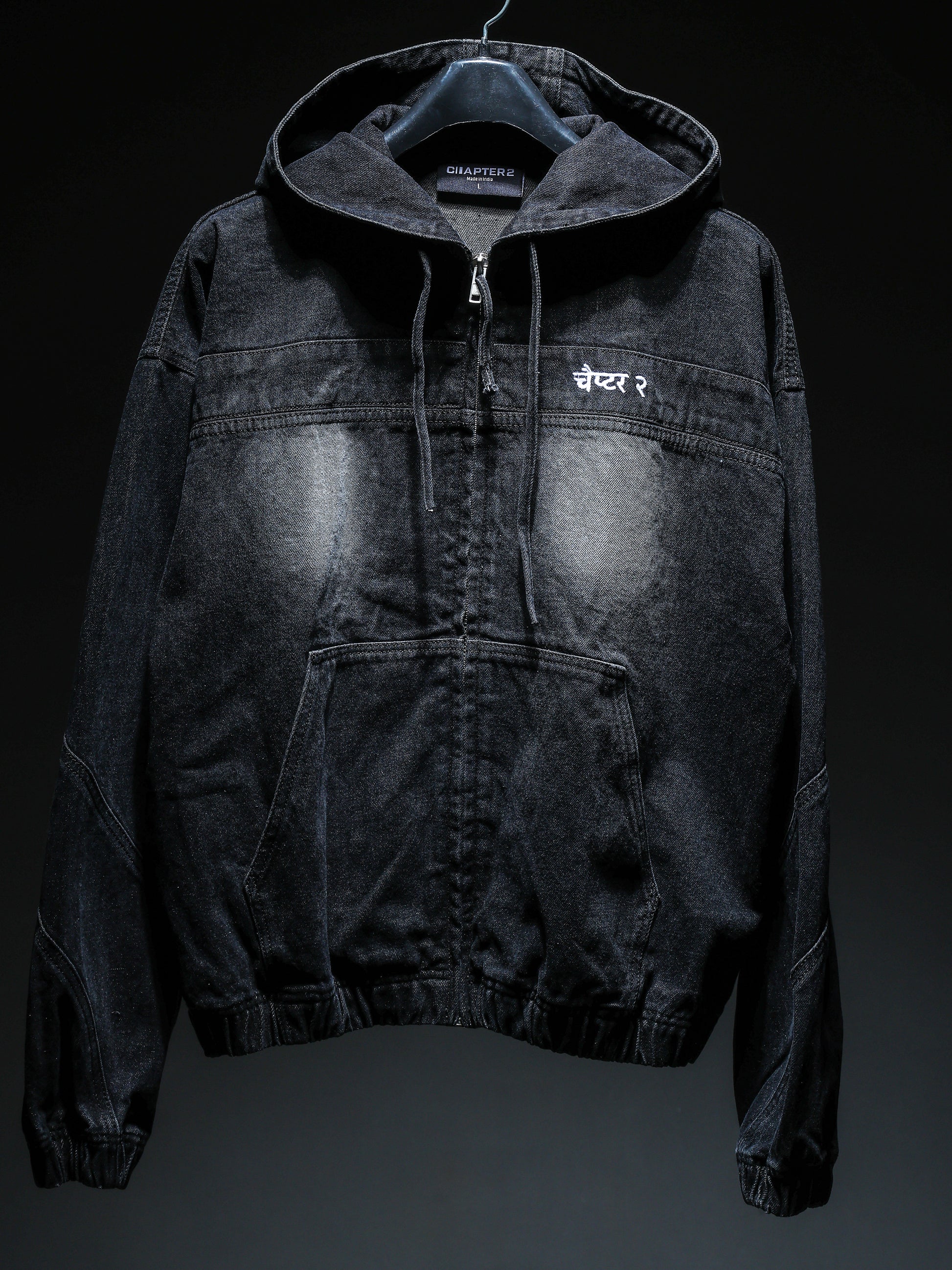 Black washed Denim Hoodie