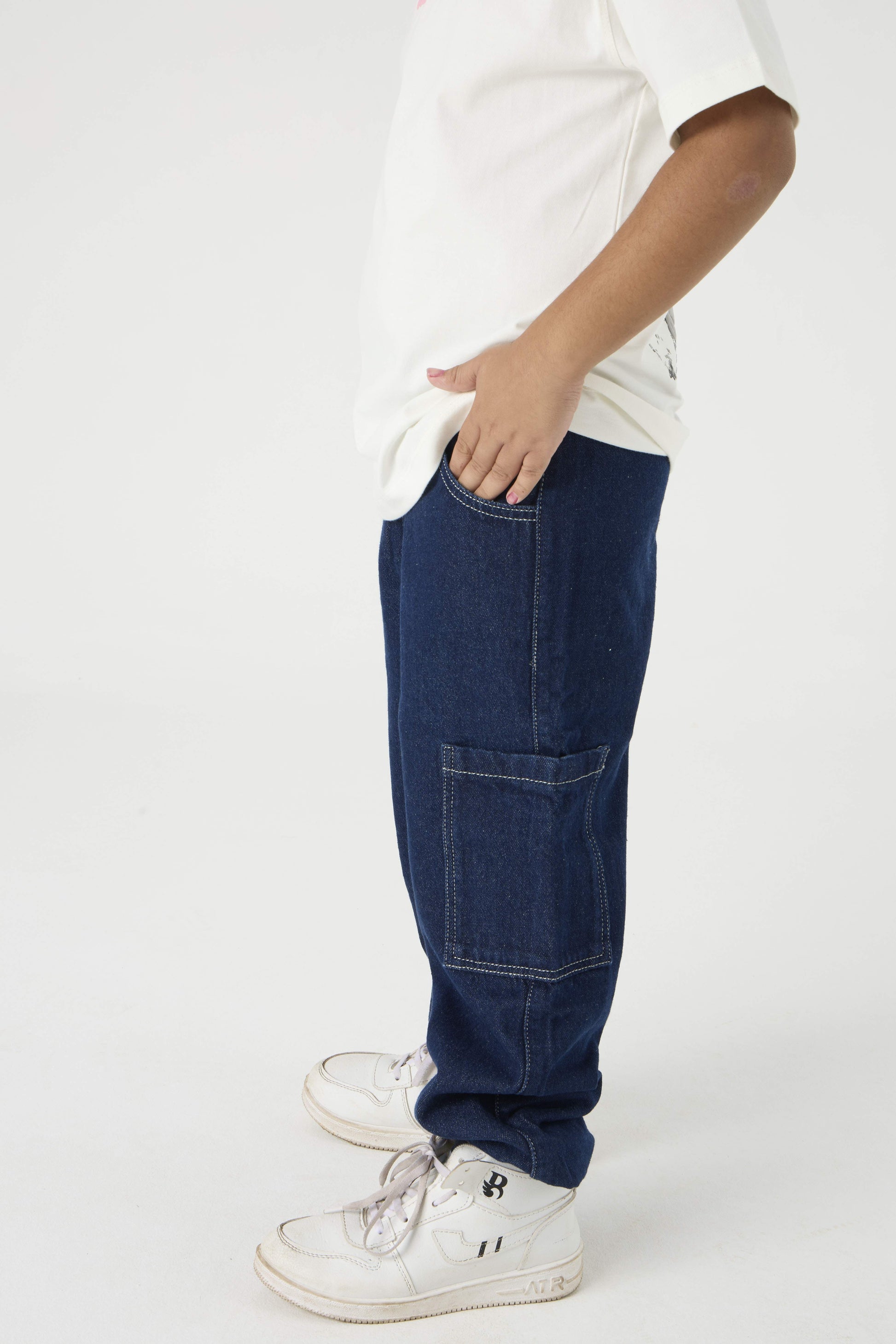 Deep indigo with a clean, easy drape. Classic denim, relaxed for now.