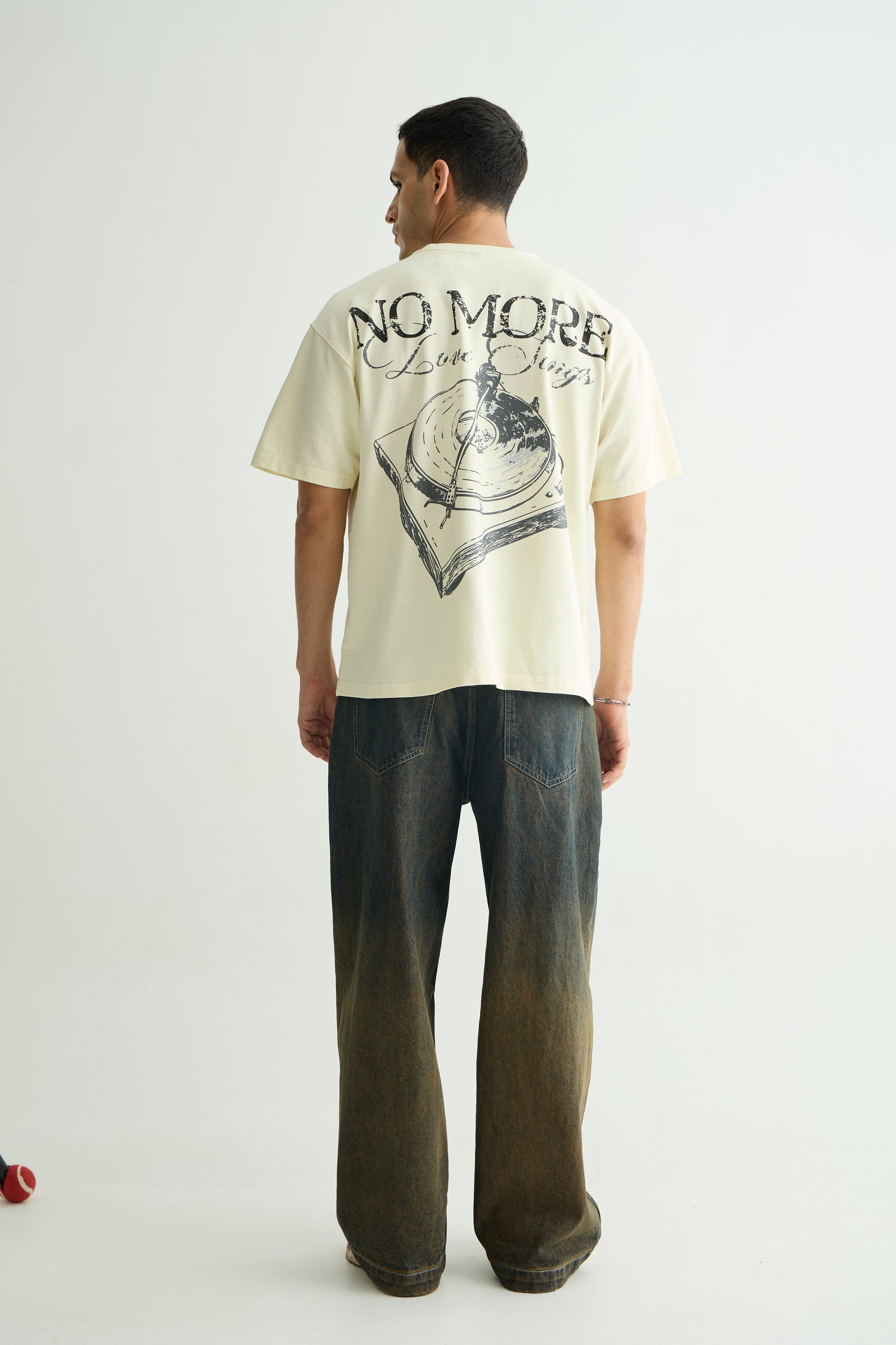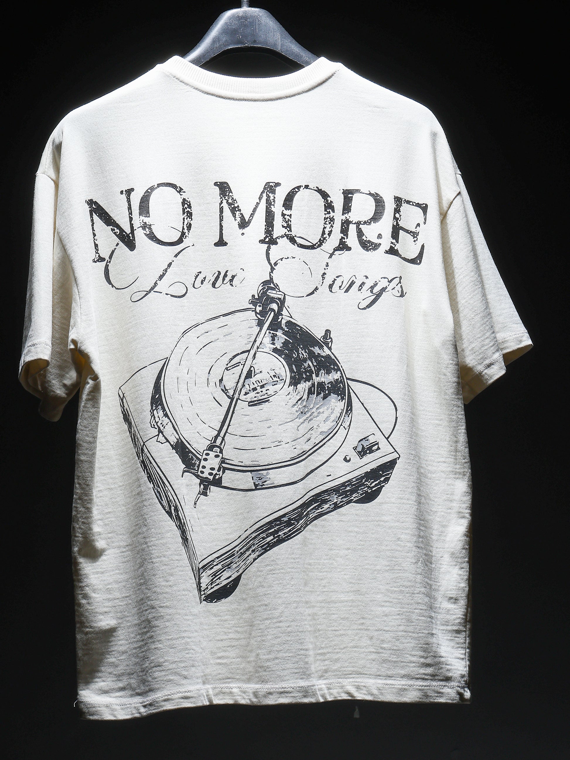 Heavyweight 260 GSM cotton construction. Features "No More Love Songs" artwork, silencing the noise. Finished with an enzyme wash for lasting comfort. Skip the track, keep the fit.