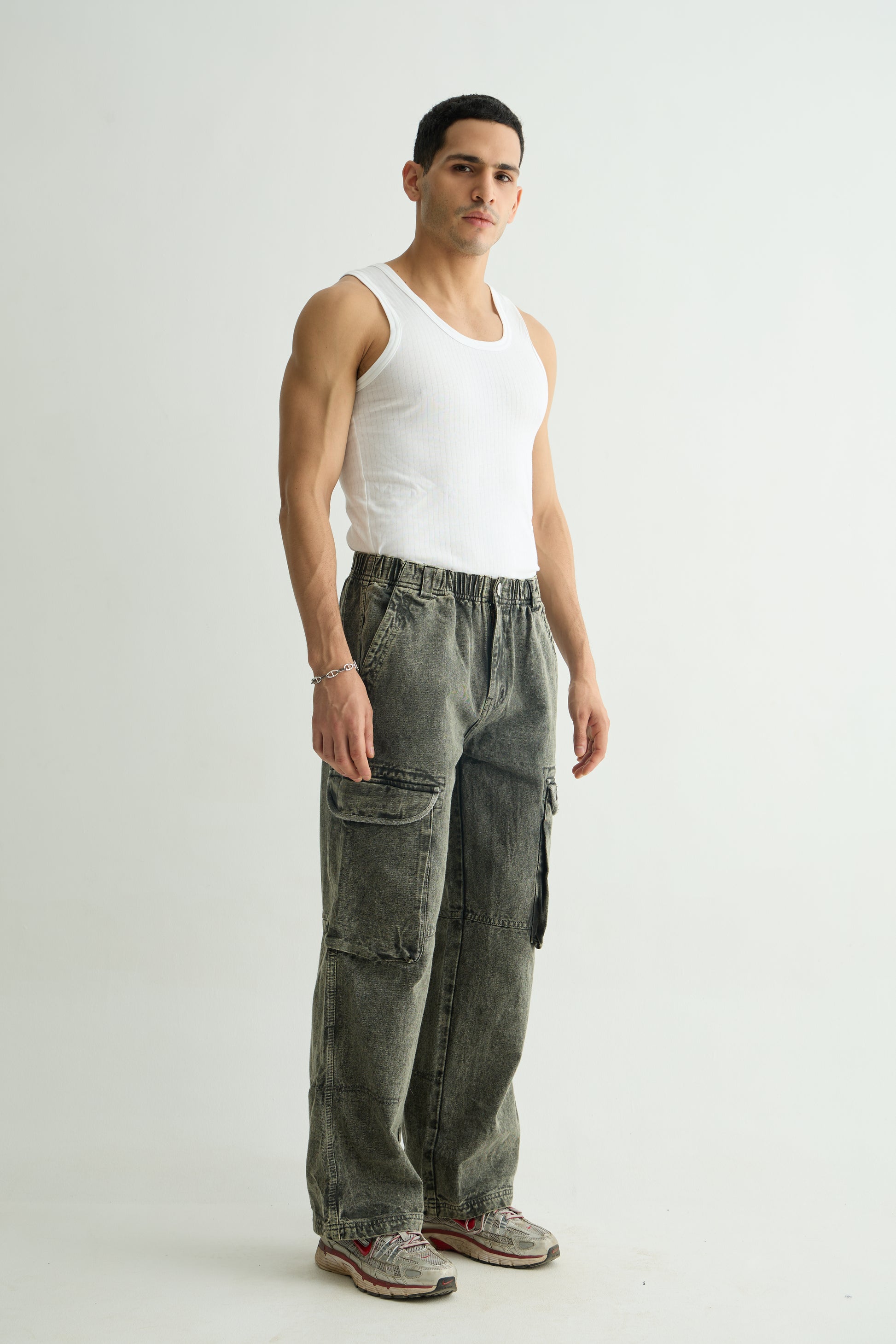 Utility-inspired cargo pants with a washed olive finish and functional pockets. Built for comfort and style with a relaxed fit that works for any occasion. A versatile essential with rugged appeal.